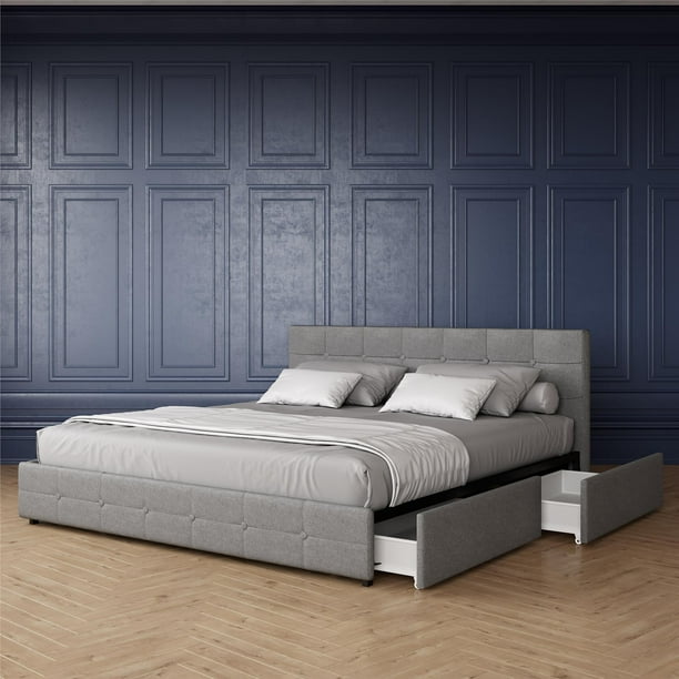 Create a look of luxurious elegance with the dhp rose upholstered platform bed. Its linen upholstery, in your choice of available color, is button tufted to add a touch of classic sophistication to its modern style. Our rose upholstered bed is made to leave just that kind of lasting impression. With a contemporary tufted detailing in the headboard and footboard, this bed will be the center point of any bedroom. Aside from that, everything else is covered with beautiful grey fabric.